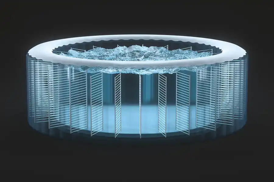 INTEX Jet & Bubble Deluxe™ SPA, dizajniran u osmougaonom obliku i elegantnoj crnoj boji, transformiše vaš spoljašnji prostor u ekskluzivnu zonu za opuštanje. Uživajte u umirujućim masažama zahvaljujući visokoperformantnim masažnim i vazdušnim mlaznicama. Ovaj model je namenjen za 6 osoba sa svim vrhunskim karakteristikama koje možete naći u INTEX SPA proizvodima—kao što su dva integrisana sistema za tretman vode i Fiber-Tech™ tehnologija koja osigurava snagu i stabilnost. Bežični kontrolni panel kojim se može upravljati putem aplikacije i udobni nasloni za glavu na naduvavanje čine vaše opuštanje u SPA još prijatnijim.