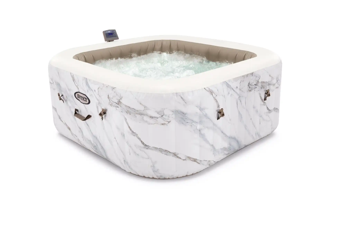 Izgled Calacatta mermera na INTEX SPA inspirisan je najluksuznijim i najtraženijim italijanskim mermerom. Ovaj model je predviđen za 4 osobe i ima 140 mlaznica za mehuriće. Sadrži dualni integrisani sistem za tretman vode, Fiber-Tech™ tehnologiju za čvrstoću i stabilnost kao i bežični kontrolni panel sa kojim možete da se povežete putem aplikacije.