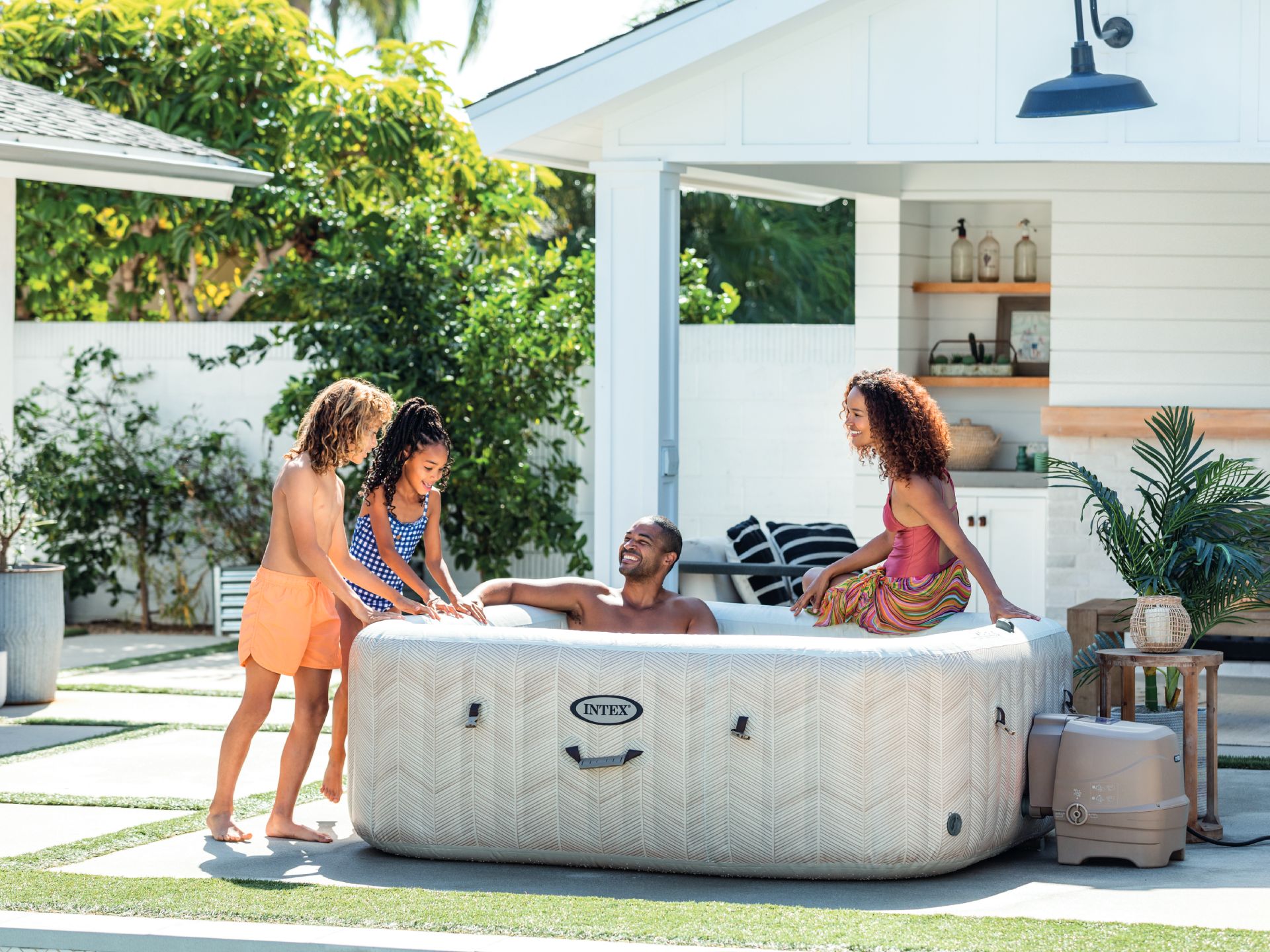 Ovaj SPA na naduvavanje kombinuje praktičnost i originalnost zahvaljujući svom kvadratnom obliku i upečatljivom novom INTEX Chevron Deluxe™ prugastom dezenu. SPA je namenjen za 6 osoba sa 170 moćnih mlaznica za umirujuću i osvežavajuću masažu. Ovi modeli SPA